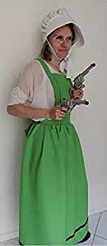 Comprend : Un haut, une robe, des gants, des surchaussures, un jupon et une tête.